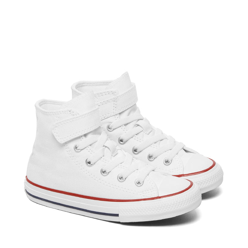 The Converse CHUCK TAYLOR ALL STAR 1V EASY ON PS sneakers are perfect for kids always on the move. With their iconic design, these shoes offer the ideal mix of style and practicality. The durable canvas upper ensures long-lasting wear, while the elastic laces and velcro strap make for easy on-and-off, perfect for little active feet. The foam underfoot cushioning provides optimal comfort throughout the day, and the rubber sole ensures reliable grip. These sneakers bring a cool, classic touch to every kid's outfit.