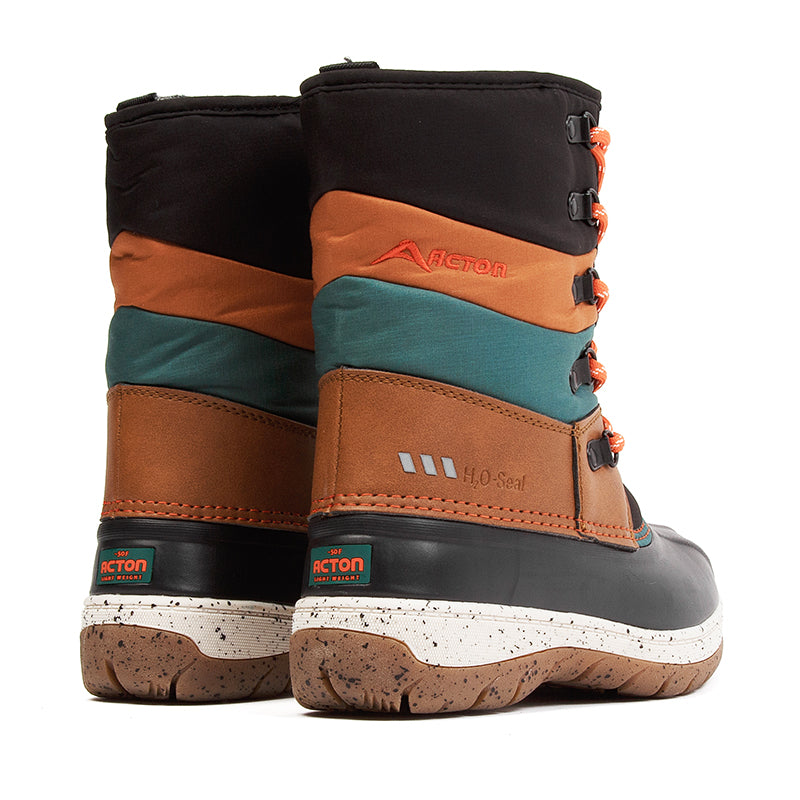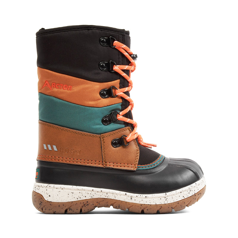 Keep your little adventurer warm and dry this winter with the Acton GUMMY BOYS boots. Crafted from waterproof synthetic leather and hydrophobic ripstop nylon, these boots feature sealed seams using the H2O Seal process to ensure maximum moisture protection. The removable triple-density insulation liner with a stabilizer arch, combined with a felt insole, provides exceptional warmth and comfort, even in temperatures as low as -45°C. A lightweight EVA shell offers flexibility and insulation, while the durable synthetic rubber outsole ensures excellent grip on slippery surfaces. High-visibility reflective inserts enhance safety, and the barrel lock closure system allows for easy on and off. Perfect for all winter activities, the GUMMY BOYS boots are a reliable choice for keeping young feet cozy and secure.