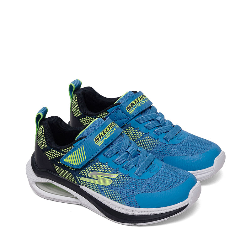 The Skechers MICROSPEC MAX VELOCITY BOYS PS is a performance-inspired athletic shoe designed for active kids, featuring a breathable mesh and synthetic upper with secure lace-up and adjustable hook-and-loop strap for a snug, easy-on fit; responsive cushioning in the midsole and a padded comfort insole deliver lightweight support and impact absorption, while the flexible outsole with traction pattern enhances grip and natural movement, making these shoes great for playground play, school and everyday activity (approximate sole thickness 1 in / 2.5 cm; overall length varies by kids’ size).