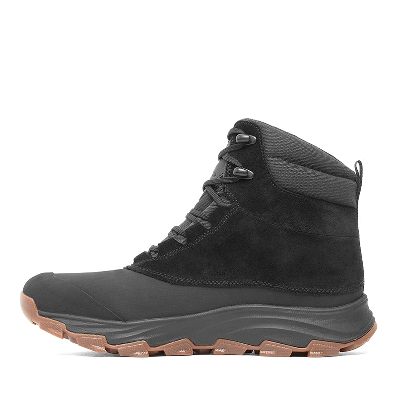 The Columbia Expeditionist Shield is a rugged, insulated winter boot built to perform in cold, wet conditions: it features a waterproof suede and rubber “duck-boot” style upper combined with Omni-TECH™ seam-sealed construction and 200 g of insulation for warmth, an Omni-HEAT™ Infinity reflective lining that helps retain heat without adding bulk, a Techlite+™ midsole for responsive cushioning and stability, and an Adapt Trax™ rubber outsole engineered for dependable traction on slick surfaces.
