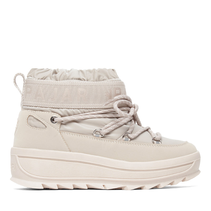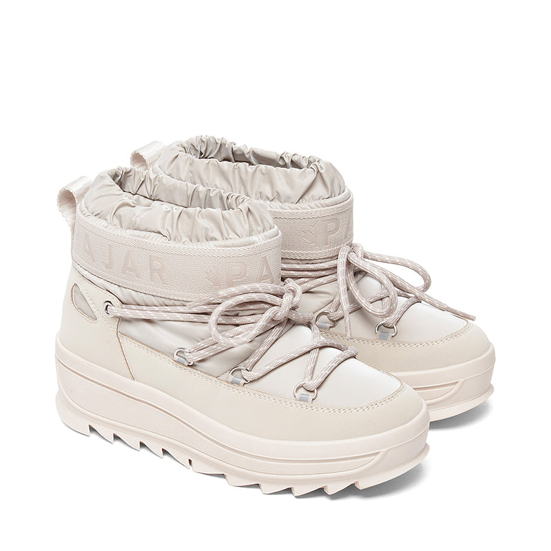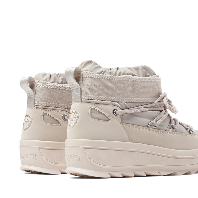 The Pajar GALAXY MINI is a waterproof winter boot engineered for cold-weather performance with urban flair: it features a nylon and vegan nubuck upper with fully sealed seams, a removable ultralight insole, and a thermal rubber platform traction lug sole, comfort-rated to approximately -30 °C (-22 °F); the shaft height is approximately 5″ (≈ 12.5 cm) and the shaft circumference about 13.7″ (≈ 35 cm), with a platform height around 2″ (≈ 5 cm).