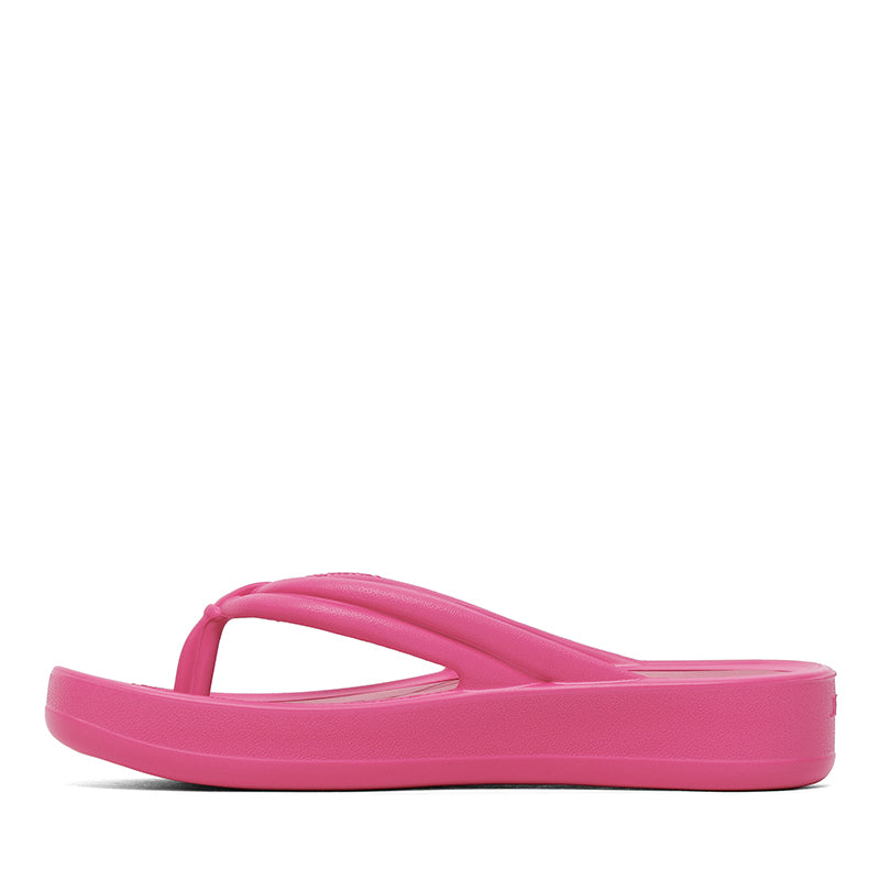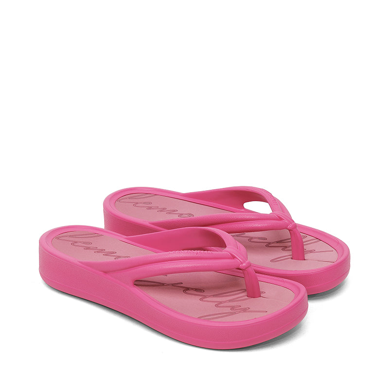 The Lemon Jelly MARE is a vegan-friendly platform flip-flop sandal that blends minimalist style with comfortable everyday wear: it features a sleek, water-friendly synthetic upper and footbed ideal for warm weather, a lightly elevated ≈ 4 cm wedge heel that provides subtle lift without compromising stability, and a cushioned, flexible sole for all-day comfort; its chic silhouette and easy slip-on design make it perfect for beach days, casual city strolls, or relaxed summer outings.