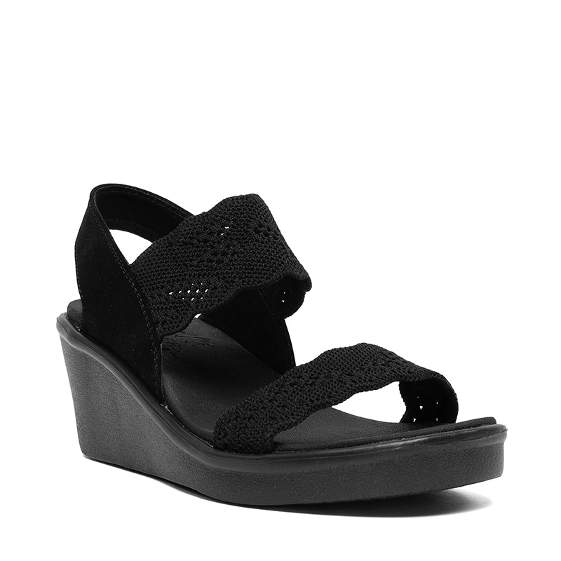 Bring a touch of romance and comfort to your sunny days with the Skechers RUMBLE ON CROCHET KNIT. These wedge sandals feature a crochet knit upper, offering a refined and summery style. The stretchable slingback strap ensures a perfect fit, while the Luxe Foam® cushioned footbed provides all-day comfort. Made from 100% vegan materials, these sandals are also environmentally friendly. The flexible traction outsole ensures optimal grip, and the 3-inch wedge heel adds an elegant height to your silhouette. Perfect for casual outings or special occasions, the RUMBLE ON CROCHET KNIT combines style and comfort in a practical and chic design.