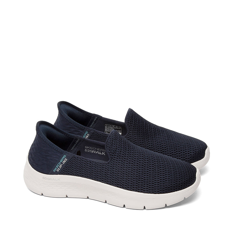 Effortless comfort meets sleek design with the Skechers Slip-Ins GO WALK Flex Relish. Hands Free Slip-Ins™ tech allows easy wear without bending, while the breathable mesh upper offers a sock-like fit. Enjoy plush Air-Cooled Memory Foam®, a lightweight cushioned midsole, and flexible traction for all-day support—ideal for casual wear, travel, or long walks.