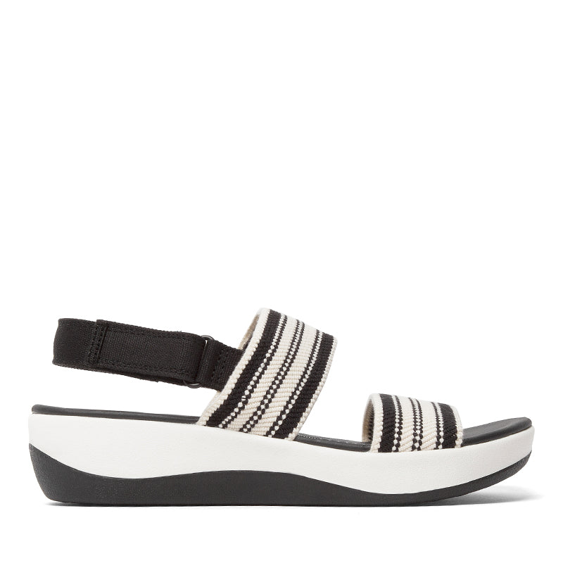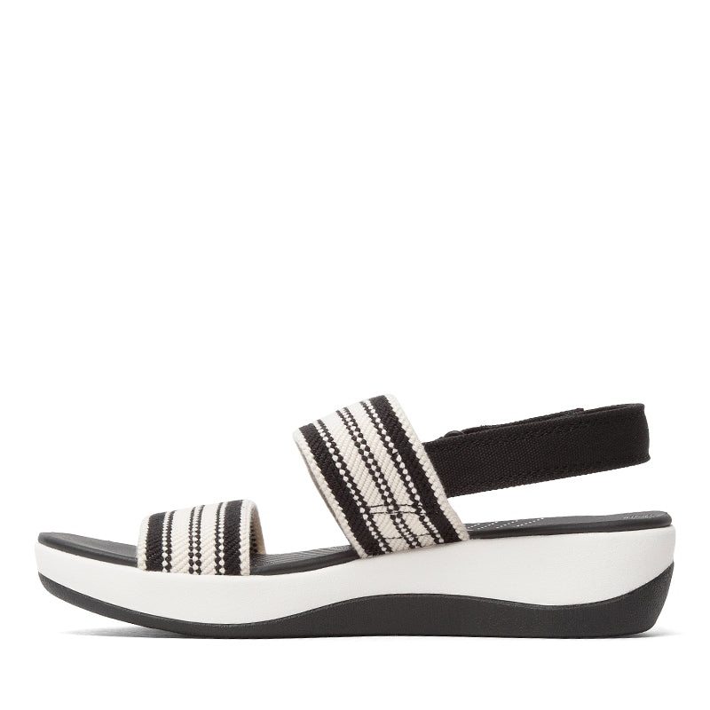 The Clarks ARLA STROLL is a lightweight thong sandal from the Cloudsteppers™ collection, designed for all-day comfort and effortless summer style. Featuring a soft textile upper with an adjustable hook-and-loop closure, it ensures a secure, personalized fit. The Cushion Soft™ foam footbed and lightweight EVA midsole provide exceptional cushioning and support, while the soft toe post enhances comfort. Machine-washable for easy care, this sandal is perfect for warm-weather adventures. Heel height: 40mm.