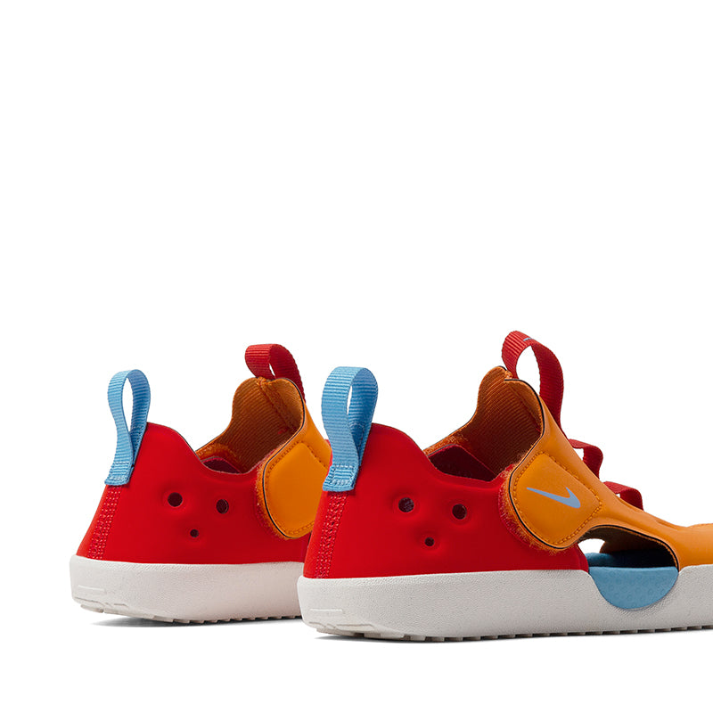 The Nike SUNRAY PROTECT 4 PS delivers lightweight support with a breathable mesh upper and adjustable straps for a secure fit. It features a cushioned insole and a flexible rubber outsole designed for traction and durability, ideal for active kids.