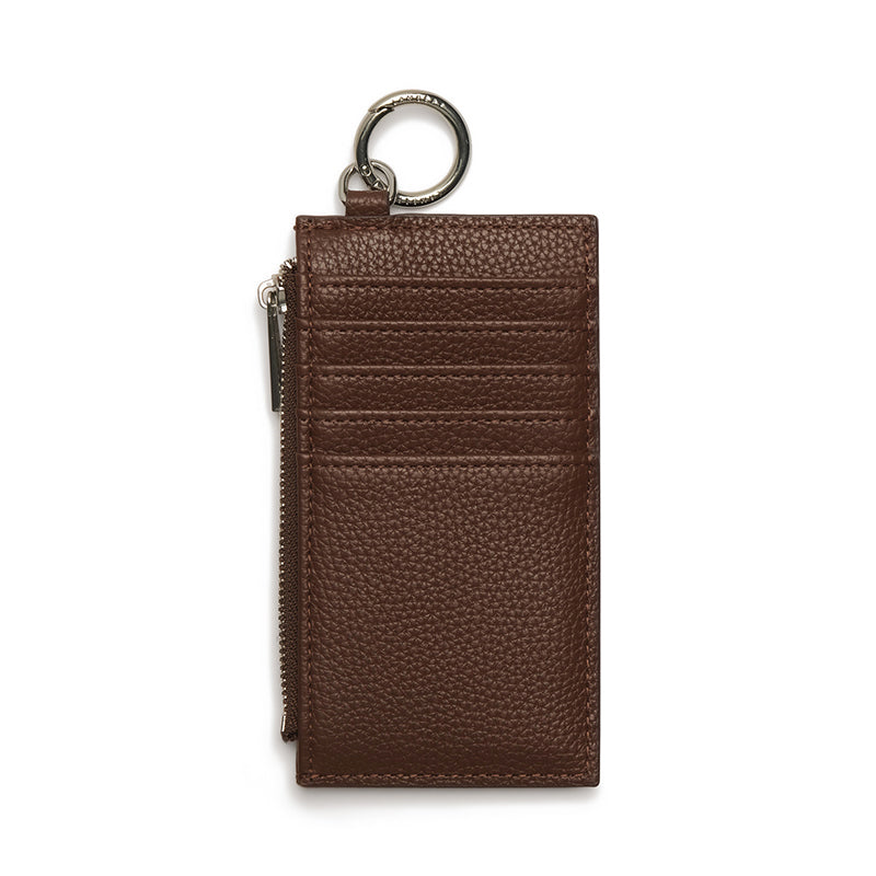 The Lambert PHOEBE is a slim, eco-friendly card holder made from vegan leather. It offers 10 card slots, a zippered pocket for coins or small items, and a key‑ring attachment. Dimensions: 7.5 cm (width) × 14.25 cm (height) × 0.5 cm (depth).