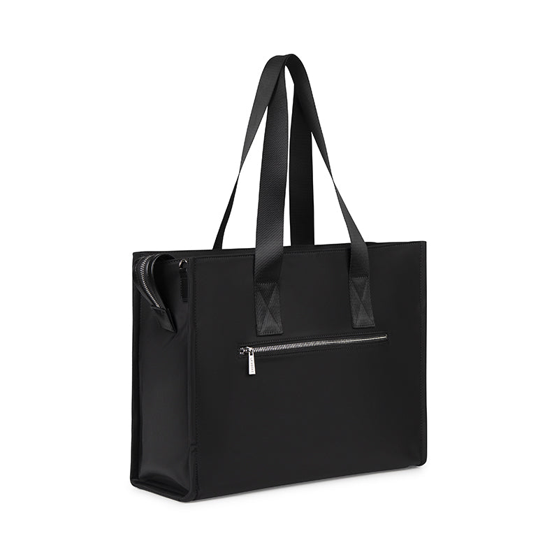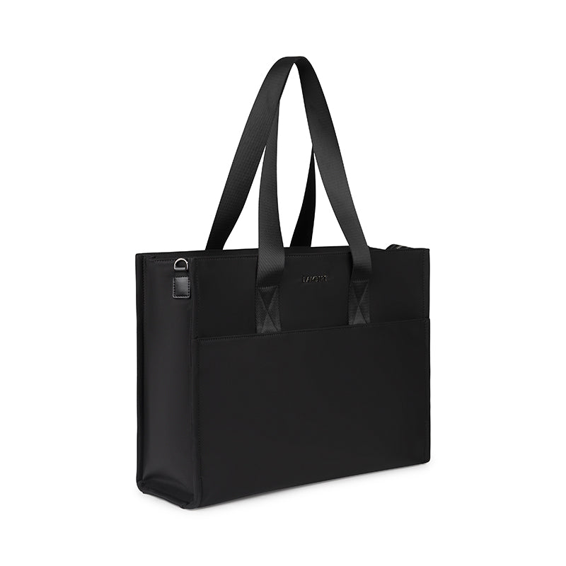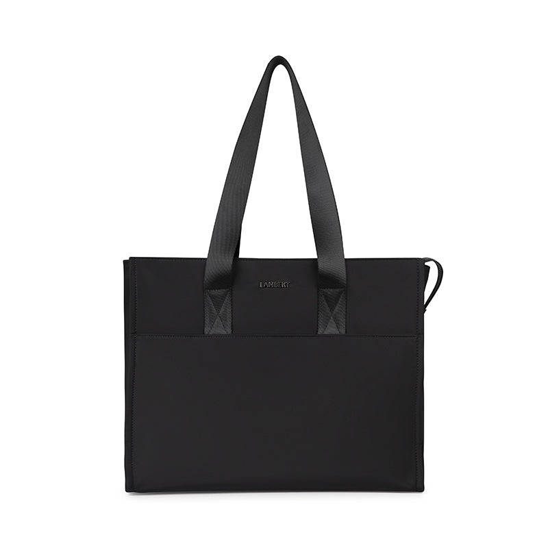 The Lambert TESSA is a versatile and eco-friendly tote bag designed for modern women seeking functionality and minimalist style. Crafted from 100% recycled nylon with a water-resistant finish, it offers a spacious yet lightweight design, perfect for carrying a 16” laptop, daily essentials, or gym gear. The TESSA features multiple compartments, including a padded laptop sleeve, two expandable water bottle pockets, an earbud pocket, a key clip, and several interior pockets for optimal organization. Its dual carrying options—long handles for shoulder wear and an adjustable crossbody strap—provide flexibility for various occasions. With dimensions of 41.5 cm (width) x 32 cm (height) x 16.5 cm (depth), the TESSA combines practicality with a sleek design, making it an ideal companion for both workdays and weekend adventures.