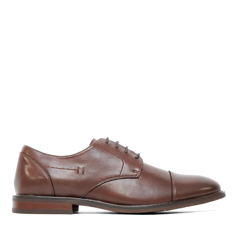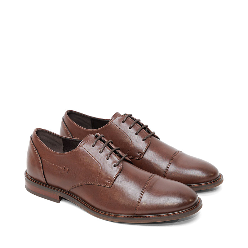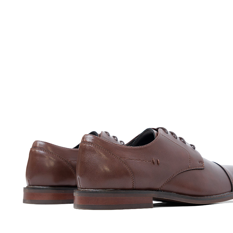 This cap-toe dress shoe delivers a refined look with all-day comfort. Crafted in smooth polished leather, it features a cushioned insole for supportive wear and a flexible rubber outsole that enhances stability and ease of movement. Its sleek silhouette pairs perfectly with formal and business attire, making it an essential style for work, events, or special occasions.