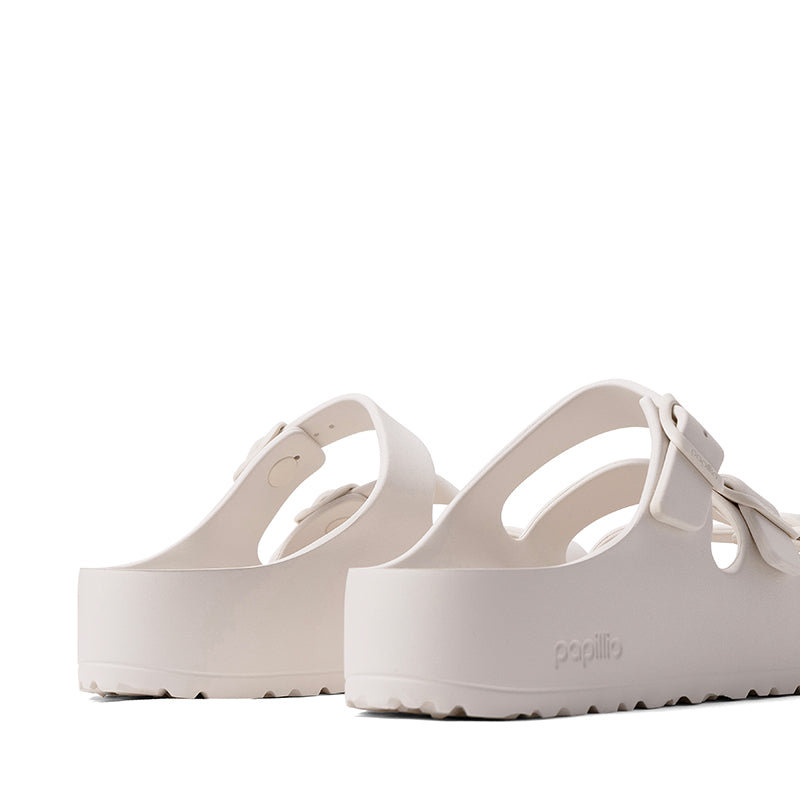 A modern update on Birkenstock’s classic three-strap sandal, the Birkenstock FLORIDA III PLATFORM EVA W is crafted entirely from lightweight, water-friendly EVA (ethylene-vinyl acetate) for cushiony comfort that floats, flexes and dries quickly — perfect for beach days, poolside strolls or everyday warm-weather wear. This sandal features an anatomically contoured EVA footbed that supports your natural stride, three adjustable straps with pin-buckle closures for a secure, customizable fit, and a 1-inch platform sole that adds subtle height while maintaining flexible shock absorption and ease of movement. The ultra-light, washable construction makes it easy to clean and ideal for travel or casual style. Approximate dimensions (varies by women’s size): Length ~ 25.0 cm, Width ~ 9.5 cm, Platform height ~ 2.6 cm (reference size 38/US 7).